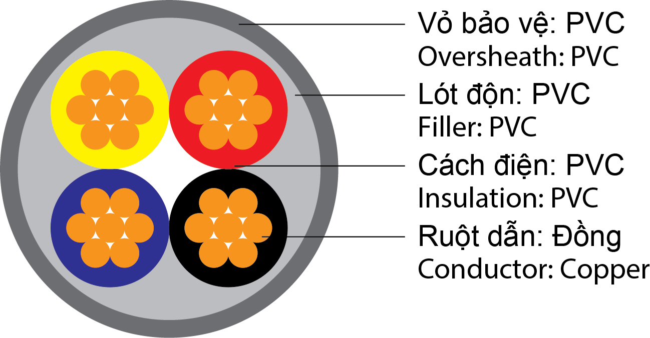CVV cable is used for power transmission and distribution system, 300/500 V voltage, fixed installation.